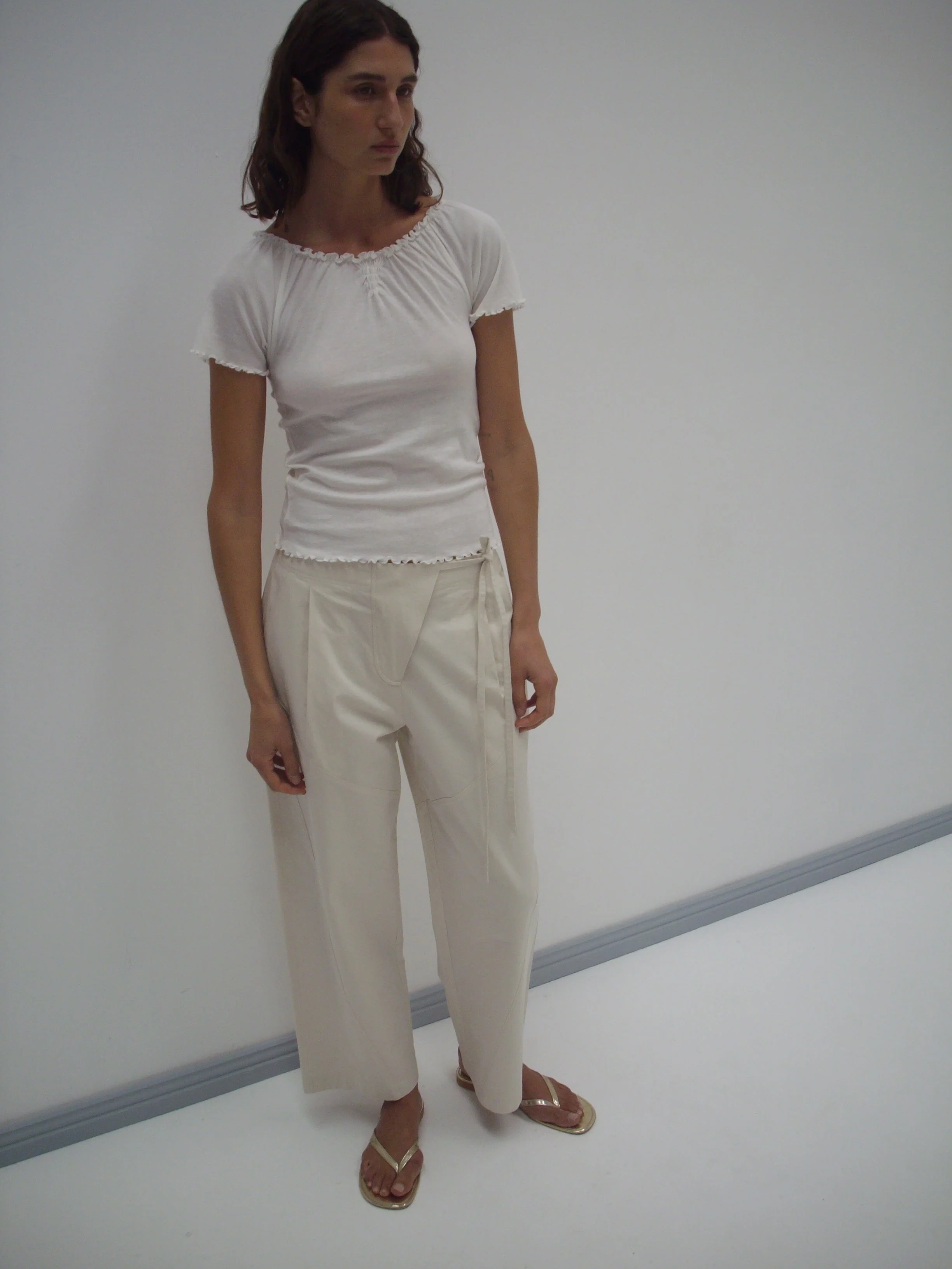 the flag tie pant by Deiji Studios in off white