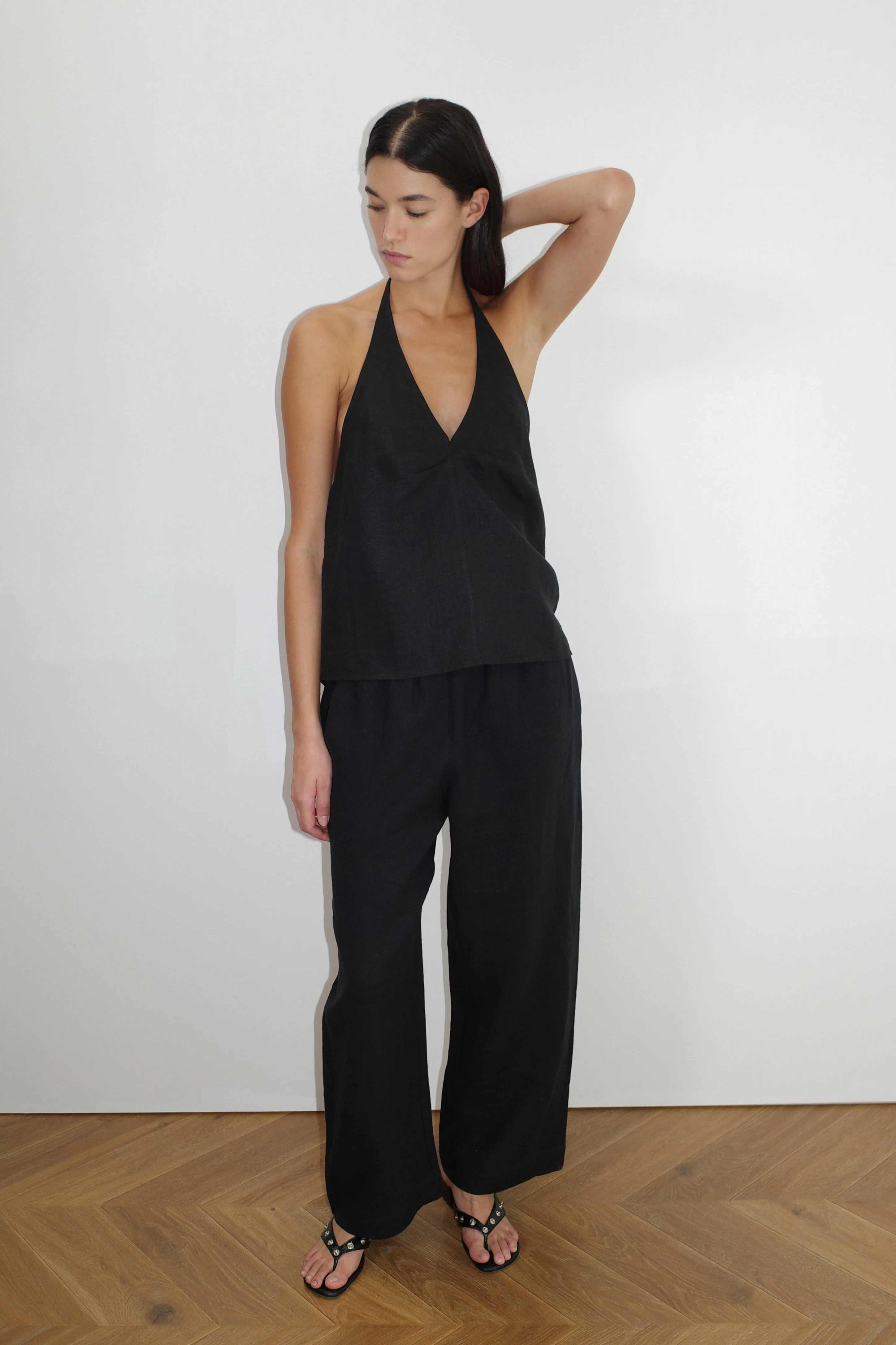 the linen ease trouser by Deiji Studios in black
