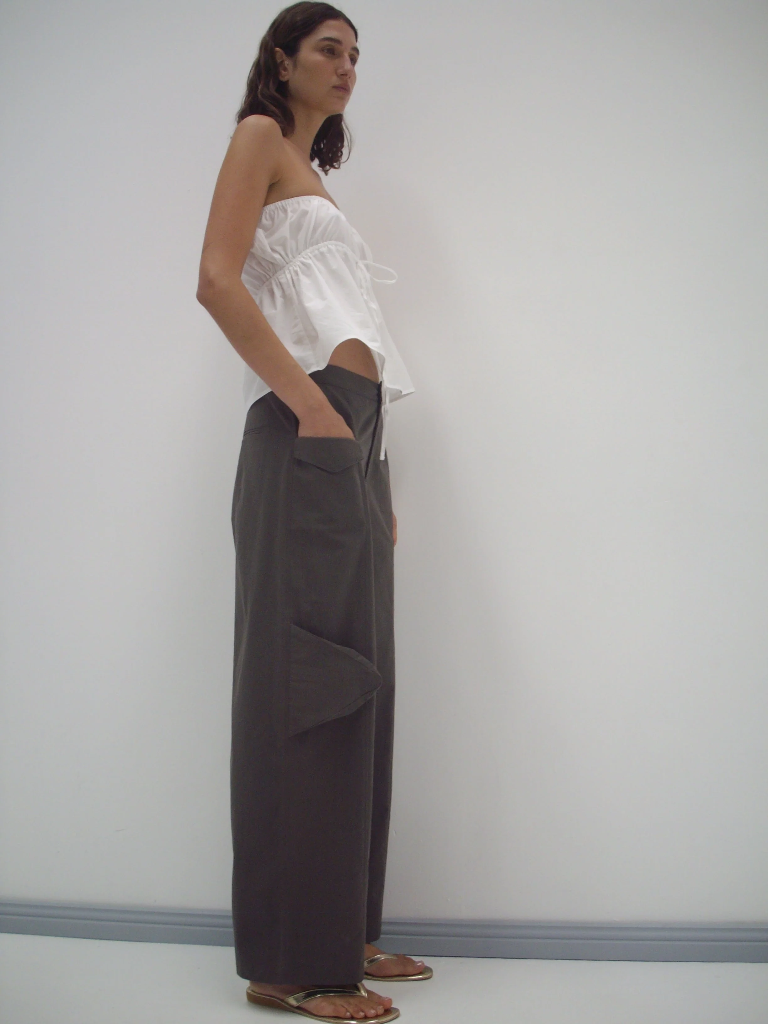 a double gathered elastic bust for soft shaping in a strapless style top, featuring a functional centre bow and mid-length